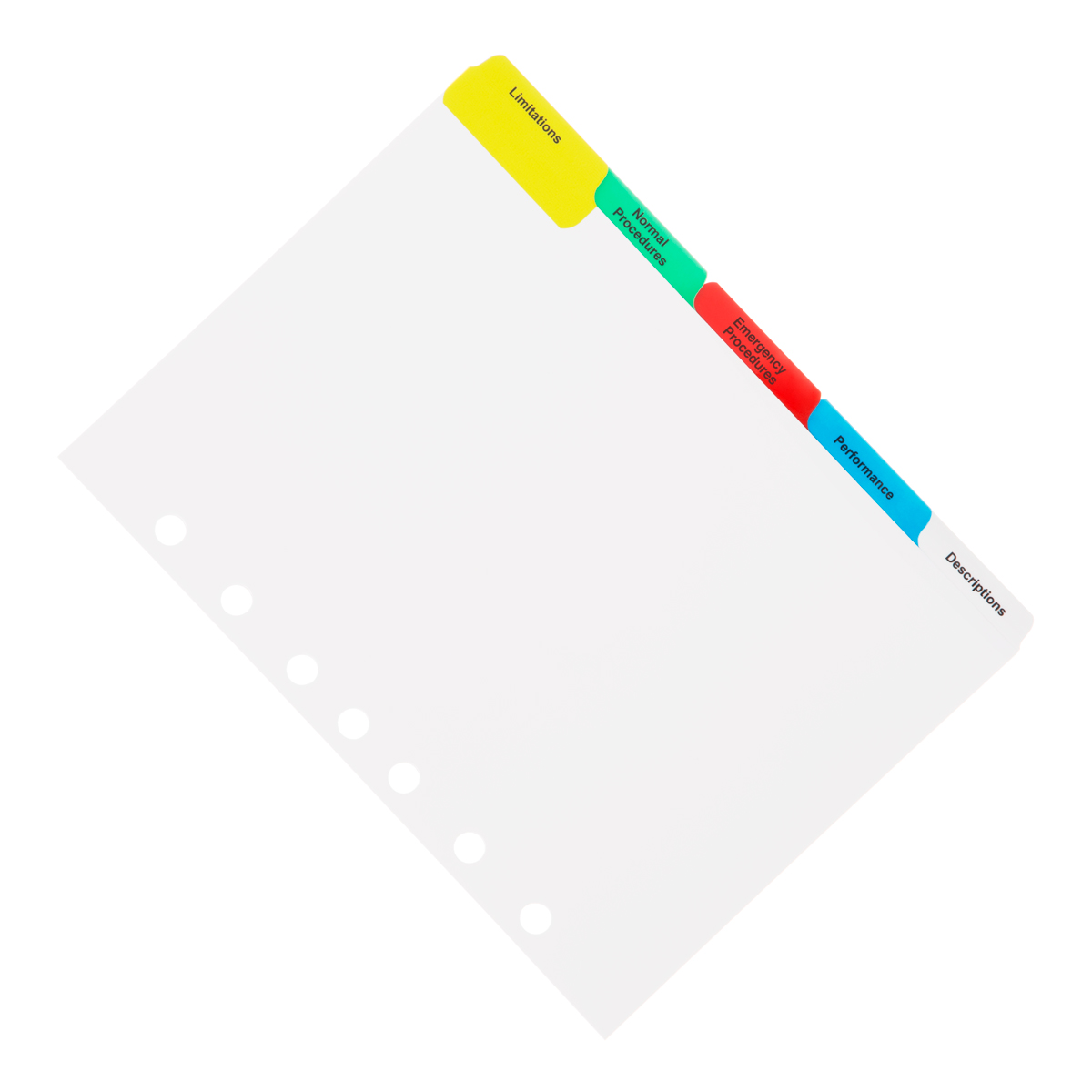 These Aerobind tabs are perfect for updating your manuals with general tabs used in many aircraft checklists and sets of 7 hole divider tabs.
